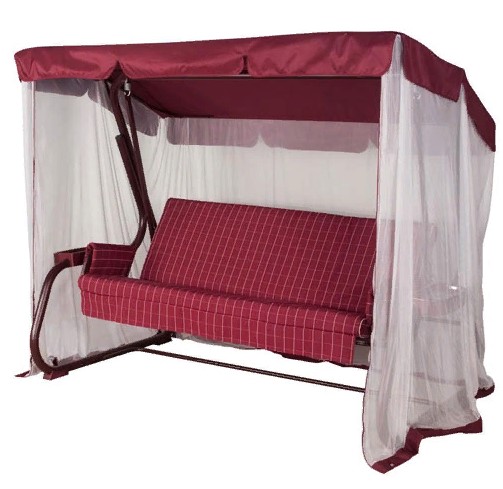 Тент-шатер + москитная сетка Нирвана изготавливаются в соответствии с габаритными размерами и конструктивными особенностями данной модели качелей. Для пошива тента-шатра используется прочная, износостойкая ткань Oxford с влагоотталкивающим покрытием. Специальная пропитка выполнена на основе жидкого, низкомолекулярного каучука. Полимерная композиция эффективно защищает от влаги, препятствует образование плесени и грибка.
